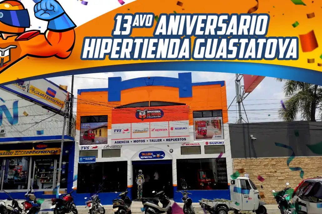 Este 2025 es un año especial para nosotros, porque en Hipertienda de Motos Guastatoya estamos celebrando nuestro 13° aniversario. Han sido 13 años de compromiso, calidad y respaldo, siempre con el objetivo de ofrecer a nuestros clientes las mejores motocicletas, repuestos y servicio técnico.